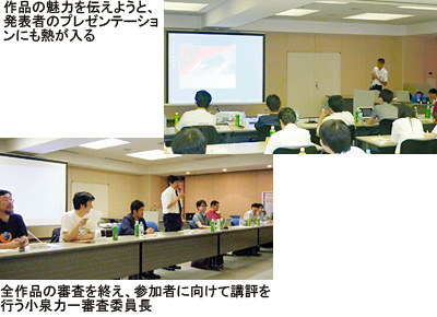 なお、U-20プロコンでは、今回から運営グループと審査グループを分けて運営・審査を行うこととなりました。これは、応募作品がプログラム言語によって直接書かれたものだけでなく、市販ライブラリや開発キット、オーサリングツールなどが多用されるようになったこと、一般的なマシン環境に加え、携帯電話向けに特化した作品が増えたことなどから、応募要項・参加資格・分野(カテゴリー)・開発形式・審査基準や段取りなど、運営方法に関わる事柄を作品の審査とは別に協議したほうがいいという理由からです。