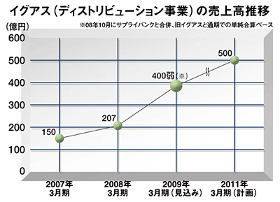 日本IBMは、ビジネスパートナーへ直接ハードウェアを卸していた従来方式を、イグアスや日本情報通信(NI+C)などのディストリビュータ経由に順次切り替えてきた。こうしたプラス効果に加え、イグアス独自の製品サポート情報や互換性の検証などの付加価値サービスを充実。新規のビジネスパートナーの開拓に結びつけた。上期末で約460社のビジネスパートナーを、今期末までに500社へ拡大させる。