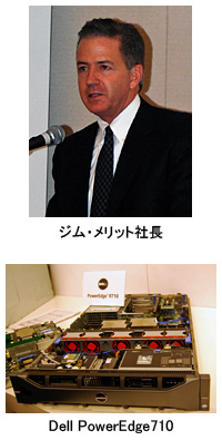 会見で冒頭挨拶したジム・メリット社長は、「ユーザー企業の声は1つに集約される。それは、ITコスト削減とROIの向上だ。デルは、オープンで使いやすく高い効率性のモデルに力を注いでおり、ユーザー企業のニーズにマッチしている」と説明。