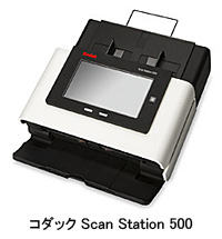 「Scan Station 500」は、カラータッチスクリーンによる操作により、専用PCを使わず、スキャンしたデータをEメールやネットワーク上のフォルダやプリンタなど複数の場所へ同時に送付できるネットワークスキャナ。既存の「コダック Scan Station 100」の後継機で、処理速度を20%向上したほか、きょう体を小型化し、操作用のタッチスクリーンのサイズを大きくすることでユーザーの使いやすさを高めている。