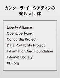 今年6月17日、「カンターラ・イニシアティブ」という名称の新団体が発足した。アイデンティティ管理技術に関する標準策定や相互運用性を推進する標準化団体「Liberty Alliance(リバティ・アライアンス)」など、アイデンティティ技術関連の7団体が発起人となって設立された。これまで複数の業界が個別に標準化を進めてきたアイデンティティ管理技術の相互運用を推進することを目的としている。アイデンティティ管理とは、情報システムやネットワークにおいて、ユーザーのアイデンティティ情報(ユーザーIDやユーザー権限、ユーザープロファイル)の設定を継続的に追加・変更・削除する一連のサイクルを指す。これまでの米国の状況をみると、推進団体である「Liberty Alliance」など複数のアイデンティティ管理関連の団体が乱立し、各団体で個々に標準化を進めてきたことによる問題が生じていた。