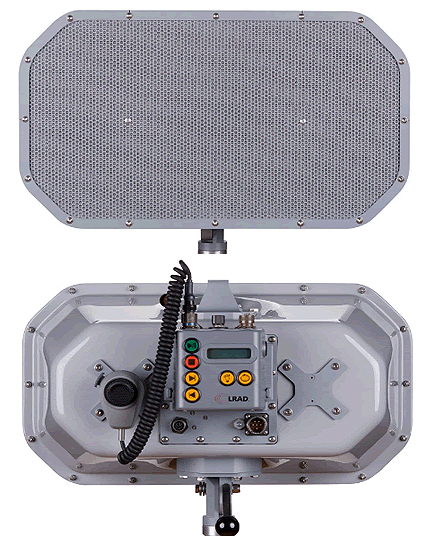 単一指向性スピーカーの専業メーカー、米・アメリカンテクノロジー社が開発した「エルラド」シリーズの新商品。幅640×高さ360×厚さ250mmで約14kgと、同社の設置型モデルの中で最も小型・軽量。出力は通常100w、ピーク時150wながら、88dBの騒音環境で明瞭に聞き取れる音声を200m以上送信可能。条件の良い環境なら1500m以上離れても内容を聞き取ることができるという。