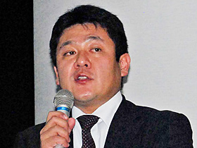 サイトロックの荒谷茂伸社長 荒谷氏のセッションでは、サイトロックのPC運用管理サービスをユーザーとして利用しているソフトバンクグループのエムソリューションズの植草学氏がそのメリットを説明。北海道から福岡県まで全国に7拠点に設置するPCの運用管理で活用しており、「(運用管理関連コストを)200万円から50万円に削減できた」と効果を説明した。