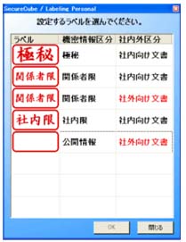 「SecureCube/Labeling」は、電子ファイルを重要度別に識別・整理するソフト。PCで情報資産を識別・整理する「SecureCube/Labeling Personal」と、サーバーで情報資産の利用状況を収集・統合管理する「同 Enterprise」の二製品を用意した。「Personal」は無償ですでに提供済み。「Enterprise」は10年1月に発売する。