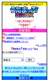 「うたまっぷ♪歌詞DX」は、約8万曲のJ-POP歌詞をアーティスト名、曲名、キーワードなどから検索して閲覧できる携帯電話用サイト。アーティストインタビューや音楽ニュース、アルバム特集など独自のコンテンツのほか、人気曲の歌詞がひと目でわかる「歌詞ランキング」、ユーザーが曲を登録して決まる「みんなのランキング」など、コンテンツが充実している。毎週300曲前後の歌詞を更新する。