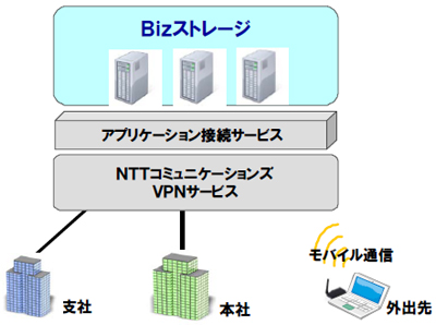 安全性の高いVPN(仮想私設網)でファイルサーバー機能を利用できるのが特徴。データはNTTコムのデータセンター(DC)に保管し、通信からストレージまでをワンストップで提供する。
