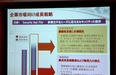 また、ニーズに合致した製品・サービスをタイムリーに投入する体制を整備。企業内ネットワークの監視・可視化ソリューション「Trend Micro Threat Management solution」など、戦略商材の販売を強化する。欧米市場を中心に、アジアへも展開し、パートナーの開拓や密接な連携によってエコシステムを構築。専門部署を立ち上げることで、2010年の売上高構成比の18%を戦略商材とする成長戦略を打ち出した。