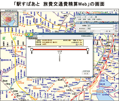 同製品は、「シンプルにかんたんに」をコンセプトに掲げており、ユーザーインタフェースを改善。「駅すぱあと」の路線図を大きく表示し、路線図から駅名を選択できる。加えて、携帯電話からの申請や定期券の差額計算なども可能となっている。そのほか、65社の路線バス情報など「公共・交通機関の情報量は他社の追随を許さない」と、太田信夫・営業部営業チームリーダーは胸を張る。価格面でも中小企業ユーザーに訴求できると踏んでいる。初期費用は一切かからないASPサービスで、1ライセンスが年額2520円に設定されており、「価格の安さが魅力になっている」(太田・リーダー)と語る。「アップデートが非常に多い」(太田・リーダー)オンプレミス(自社運用型)に比べ、ASPサービスはアップデート作業が不要になるのも利点だ。(信澤健太)
