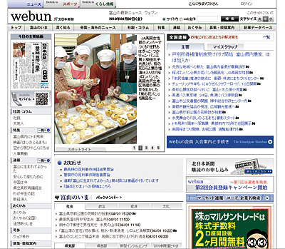 日本オープンシステムズがシステム開発を担当した北日本新聞社のウェブ版「webun」の画面イメージ