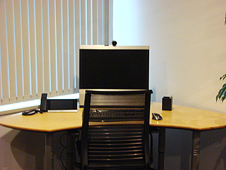 EBCの受付を過ぎると、ガラス越しにビデオ会議システムの検証ブースが見える。最近では、国内でも40-100台の大規模なビデオ会議システムを検討する顧客が増えているという。同社は、こうした大規模なビデオ会議ネットワークを管理できるツールとして、「TANDBERG Management Suite」を提供している。