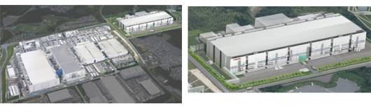 東芝四日市工場の全景(一番右奥が第5製造棟)と第5製造棟のイメージ