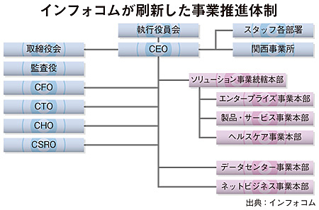 今年度に入り、インフォコムはソリューション事業統轄本部の傘下にあった「GRANDIT」事業本部を同統轄本部の製品・サービス事業本部に統合した。企業内の帳票などを統合的に管理・活用するECMソリューションや知的財産ソリューション、コールセンターといった自社開発パッケージ群と同列に「GRANDIT」を扱うこととなった。