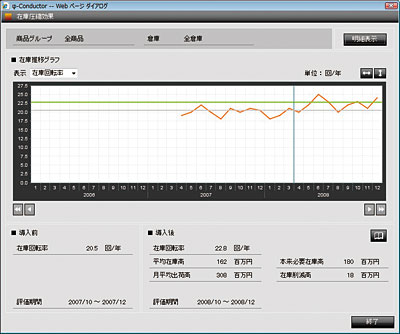 商社や卸売業などでは、余剰在庫、欠品、売れ残った在庫の死蔵化、売り逃しによる機会損失などを防ぎ、在庫を適正化することが求められる。Effect ChaserVer.4.0は、「φ-Conductor RP」を導入した場合の「生産性向上効果」「在庫圧縮効果」「死蔵化防止効果」「機会損失効果」を、導入前の数値と比較して算出し、可視化するツールである。 導入後のコンサルティングを保守・サポート費用に含めることで、定期的な効果追跡サービスを提供。これによって「万一効果が現れていない場合、例えば全体の数値もそうだが、エリア別、拠点別、商品カテゴリ別など、ドリルダウンして追跡することでボトルネックの解消や、運用の改善などを提案していく」(柴田マネージャー)としている。(鍋島蓉子)