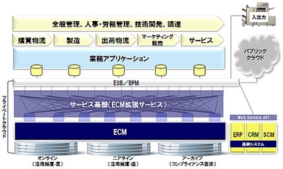 キヤノンマーケティングジャパン(キヤノンMJ、川崎正己社長)は、エンタープライズコンテンツ管理(ECM)事業の売り上げを、2013年までに倍増させる。独自に開発したミドルウェアによって、顧客企業の業務システムと、ECMデータの連携に必要なSI工数を3~5割削減。ECM分野での競争力を高め、売上増を図る。ミドルウェアを活用したSIは「ECM拡張サービス」で、10月1日に本格的な販売をスタートした。