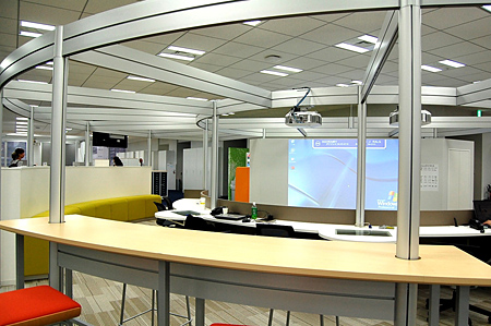 SI&サービス事業本部。写真は情報共有とチームワーク促進を目的としたクリエイティブ・ワークスペース「飯田橋AGORA」
