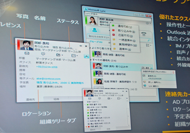 「Lync」は、アメリカで11月17日(日本時間18日)に発売。国内でも年内の発売を目指している。インフォメーションワーカービジネス本部の吉村徹也部長によれば、「スマートフォンなど、モバイル端末に対応したバージョンの発売も予定している」という。