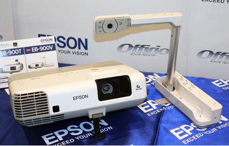EB-900V 「EB-900V」は、書画カメラ「ELPDC06」をUSBケーブルでつなぐだけで、PC無しで実物投映ができる。実勢価格は17万円台後半の見込み。