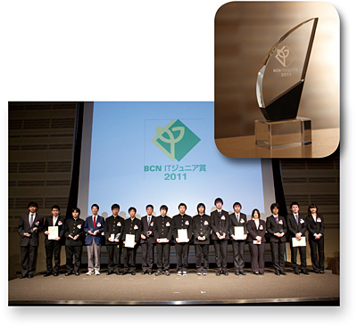 NPO法人ITジュニア育成交流協会(理事長:奥田喜久男)は、ITに取り組む若者たちの育成を目的として、2006年に設立されたNPO団体。さまざまなコンテストですぐれた成績を収めたチームや個人を「BCN ITジュニア賞」の対象として推薦しており、今年は5チーム、3個人が「BCN ITジュニア賞2011」を受賞した。