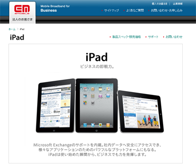 イー・モバイル、法人向けにiPad Wi-Fiモデルの販売を開始
