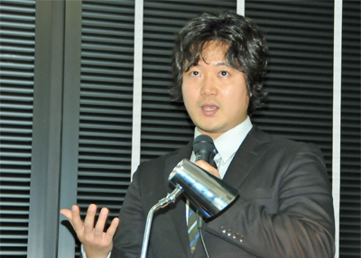 セミナーの冒頭、「『パソコンが動けばITは十分』では生き残れない」と題した基調講演で、調査会社ノークリサーチの岩上由高シニアアナリストは、中小企業の売上げ減少の対策として、IT導入の必要性を訴求した。