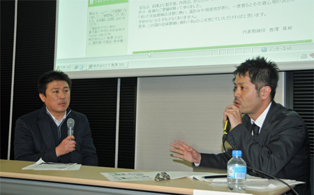 今回のセミナーでは、『週刊BCN』が初めての試みとして「公開取材」を敢行。木村剛士副編集長が、昨年3月にネットビジネスエントリーシステムを導入したエヌ・西澤の西澤具邦代表取締役に、システムのメリットを聞いた。エヌ・西澤は割烹着などを作る中小企業で、製品は卸業者を介して販売している。