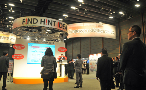 会場では最新の製品/ソリューションを披露 「2011」で5回目の開催となった「Customer's Fair」は、ユーザー企業との触れ合いの場を設け、製品/ソリューション展開を直接アピールするのが目的だ。会場では、「EmpoweredOffice」「運用サポート」「クラウドプラットフォーム」など、テーマごとに最新の製品/ソリューションをおよそ1000人の来場者に披露した。
