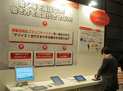 NECネッツエスアイ(山本正彦社長)は、オフィス改革関連のソリューション群「EmpoweredOffice」をはじめ、自社商材をユーザー企業に訴求するイベント「Customer's Fair 2011」を、2月18日に東京国際フォーラムで開催した。