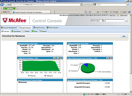 「McAfee SaaS Email Protection」は、スパムメールのブロック、ウイルスとワームのスキャン、フィッシング詐欺対策などを提供。スパムと判別したメールを、いったんクラウド上の隔離領域に保管し、管理者が専用のポータルサイトからアクセスして、必要なメールが誤ってブロックされていないかどうかを確認できる。スパムではないメールが隔離されていた場合、手動で解除することができる。