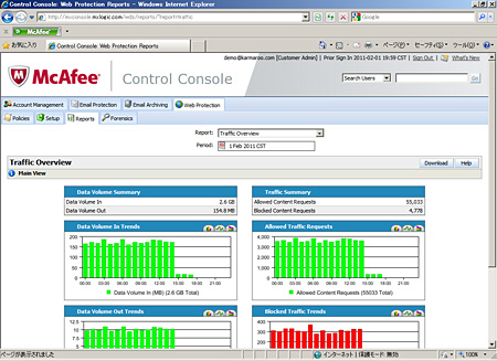 「McAfee Web Protection」は、ウェブレピュテーションやコンテンツカテゴリー判定によるフィルタリング、コンテンツスキャンなどを提供。クラウドベースのセキュリティ基盤「GTI(Global Threat Intelligence)」に蓄積している世界中の脅威動向をもとに不正なアクセスをブロックするほか、コンテンツスキャンによって未知の脅威や動的に変化するスクリプトを検出することができる。