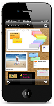 写真や動画も自由に貼り付けることができる さらに、付箋やキャンバスをダブルタップやピンチ操作で拡大・縮小する操作にも対応している。データはクラウド上に保存されるので、PCブラウザとiPhone/iPadで共有できる。(鍋島蓉子)