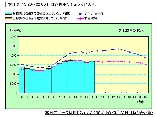 【震災関連情報】東京電力、「電力の使用状況グラフ」をHPで公開、ヤフーはメーターで表示
