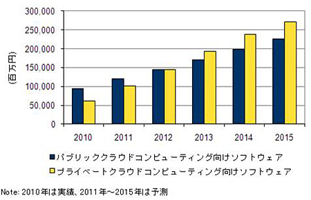 2010年の国内ソフトウェア市場全体に占める割合は3.0%にとどまっているが、2015年には11.4%を占め、パブリッククラウドコンピューティング向けソフトウェア市場を上回る市場規模となる。(信澤健太)