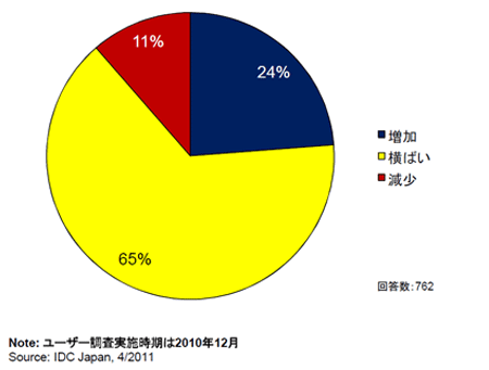 DR対策に対する2009年から10年にかけての支出増減、10年から11年にかけての予算増減に関する調査結果では、「増加」の回答が「減少」を大きく上回っており、投資の回復が感じられる結果となった。東日本大震災を受け、今後、さらにこれまでのDR対策を見直す動きが需要として加わる見込みだ。