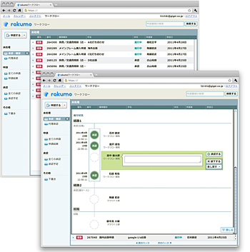 「rakumoワークフロー」は、Google Appsが提供していない経費申請などの各種申請や承認、回覧などのいわゆるワークフロー機能を提供。インターネット環境があれば、ブラウザ上でどこでも利用できる。
