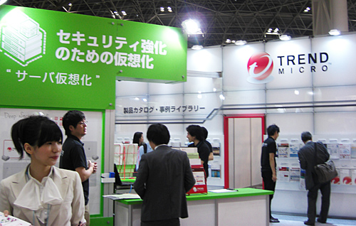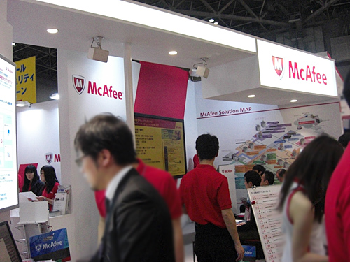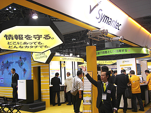 会場全体では、トレンドマイクロ、シマンテックが最大規模の小間数で競い合って出展。さらにその隣にはマカフィーがブースを構えるなど、アンチウイルスベンダー三つ巴の並びが目を引いた。