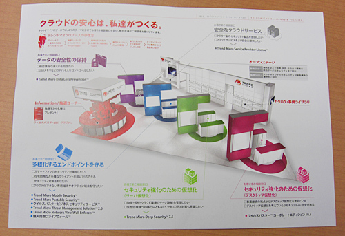 トレンドマイクロは、「データの安全性の保持」「多様化するエンドポイントを守る」「セキュリティ強化のための仮想化(サーバ仮想化)」「セキュリティ強化のための仮想化(デスクトップ仮想化)」の4テーマで製品を展示した。