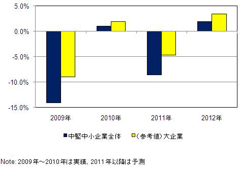 国内中堅中小企業IT市場 前年比成長率予測(2009~2012年)