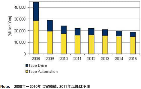 また、12年は11年の落ち込みの反動もあり、需要回復に向かうと考えられるが、13年以降はディスクバックアップが進展する影響を受け、再び減少トレンドに入るとみている。(ゼンフ ミシャ)