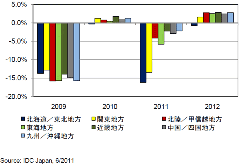 IDC Japanは、12年はサプライチェーンの回復や復興需要の拡大によって業績が回復するSMBが増加し、北海道/東北地方を除いて、各地域でプラス成長に転じるとみている。(ゼンフ ミシャ)