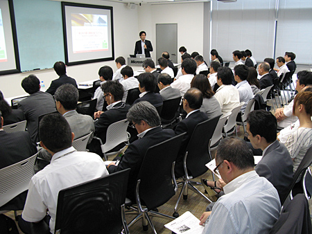 続いて、船井総合研究所の斉藤芳宜・チームリーダーチーフコンサルタントが「震災後の業界動向とソフト会社が進むべき道」と題して講演した。今回の大震災が、原発安全神話の崩壊や計画停電、首都機能のマヒという課題を突きつけたことを踏まえ、「これはどんなメッセージだったのか。便利な生活を追求し続け、必要以上の電力や過密ダイヤが生まれたということだ。半永久的に節約する必要がある」としながら、節電などを一過性のものではないものとする提案を行った。