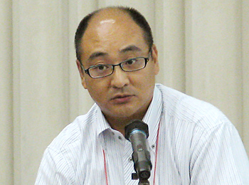 続いて、「災害とインターネット~東日本大震災被災地からの報告~」と題し、宮城県大河原町のISP、ジェットインターネットの代表取締役である晋山部会長らが被災地の状況を説明した。晋山部会長は、地元メディアが撮影した津波の映像や気仙沼ケーブルが提供したDVDを放映しながら、「京都リサーチパークから京都駅までは2Km。京都駅が海だとすると、ここまで津波が来たことになる。インターネットはバッテリ蓄電期間だけ稼働した後、電気が不通になって使用できなくなった。防災無線が途絶えた地区もあり、電気の復旧に関する課題は大きい」と述べた。