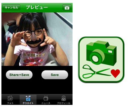 https://drcrop.com/)で行い、アプリ内でパーツを選んで大きさや配置を調整しながら写真を撮るだけで、簡単に合成写真を作成できる。利用できる合成パーツは800以上。