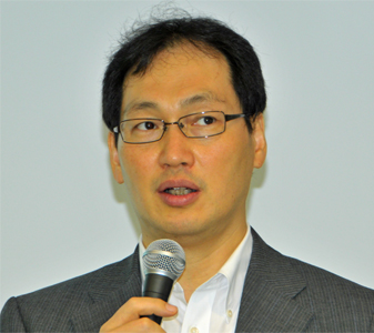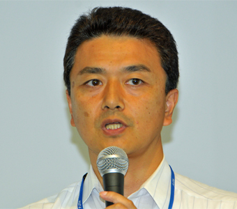 富士通東北システムズ ビジネスモデル変革室の江口則地ITエキスパートは、「青森のDCでは、『InfraStruXure』の導入や冷外気の活用によって、平均の電力使用効率(PUE)を1.37に下げることができた。PUEが1.9の一般的なDCと比べて、27%のエネルギー削減になる」と、エネルギー使用の効率化の成功事例を披露した。(ゼンフ ミシャ)