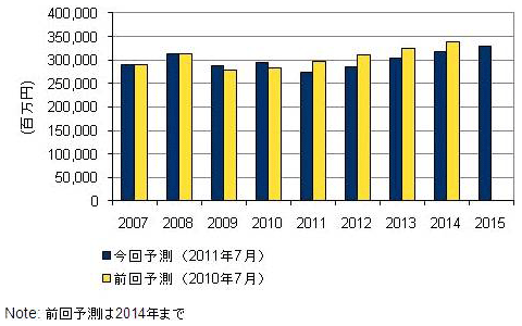 10~15年のERP/SCM/CRM/BIパッケージ市場は、年平均成長率(CAGR)が2.2%で推移すると予測。ただし、東日本大震災の影響で11年は市場規模が縮小する。なお、11年以降も企業はCRMに対し継続して投資するが、SaaSの利用率が上昇し、顧客数と市場規模は比例しない時代に突入するとみている。