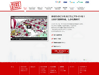 中小企業・個人事業者が、ウェブサイトを無料で簡単に作成できるサービス。HTMLなどの専門知識がなくても、15分ほどでつくることができる。ホームページ作成支援ツールには、KDDIウェブコミュニケーションズの「Jimdo(ジンドゥー)」を採用した。