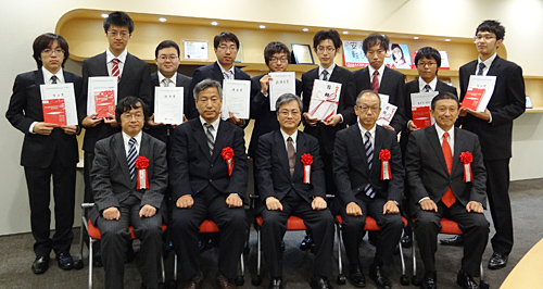 最優秀賞は西垣研認証班(静岡大学大学院西垣研究室の本部栄成さん、米山裕太さん)。自由課題で、「携帯ゲーム機のすれちがい通信を用いたsemi分散型アクティベーションの提案」で応募した。