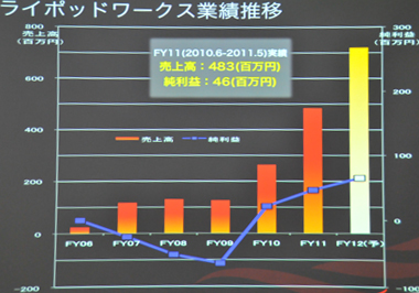 トライポッドワークスは2005年に設立。ここ数年、売り上げを順調に伸ばしており、2011年度(2011年5月期)は5億円弱の売上高に達した。同社は、2012年度には全商材で7億円以上の売上高を目指す。(ゼンフ ミシャ)