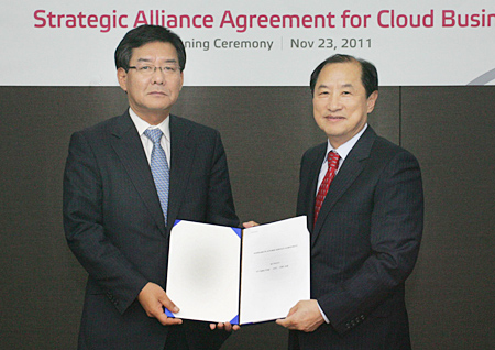 CECは、提携の第一弾サービスとして、同社のデータセンターと通信回線を使い、拠点間や取引先との情報共有や共同作業ができるウェブストレージサービス「WebHard」を2012年3月に開始する予定だ。
