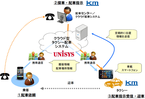 日本ユニシス、クラウド型のタクシー配車システム、5年間で売り上げ20億円を目指す