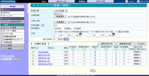 「eZ-learning」の画面イメージ PowerPointやHTML形式のデータなど、既存の教育・研修コンテンツをアップロードするだけで、eラーニングを始めることができる。受講状況の進捗管理やテストの分析など、さまざまなeラーニング機能を備えている。